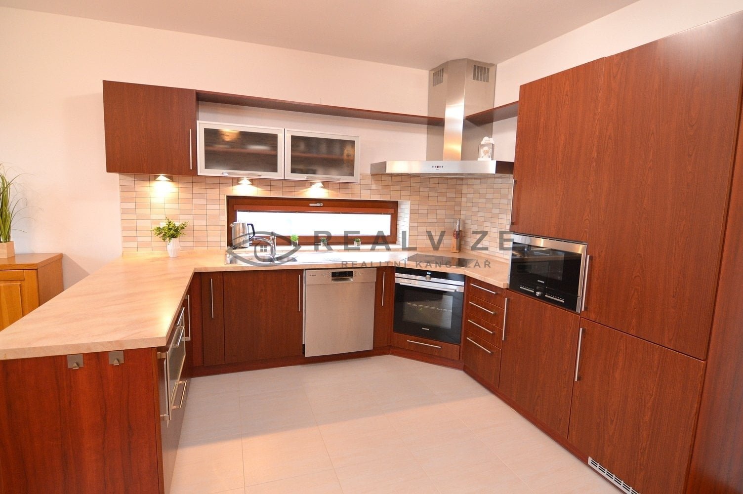 Kuchyňská linka se spotřebiči (vestavěná lednice, horkovzdušná a mikrovlnná trouba, indukční deska, myčka, digestoř). Veškeré podlahy jsou z dubového dřeva, podlahové vytápění, radiátory, bezpečnostní dveře. Bezproblémové parkování před domem. Nákupní zóna, lesopark a centrum města jsou v docházkové vzdálenosti. Nájemné je stanoveno na 25.000,-Kč /měsíc, zálohy na služby spojené s užíváním bytu jsou stanoveny na 8.500,-Kč, majitel požaduje kauci ve výši 60.000,-Kč, provize RK 30.250,-Kč. Volné ihned.